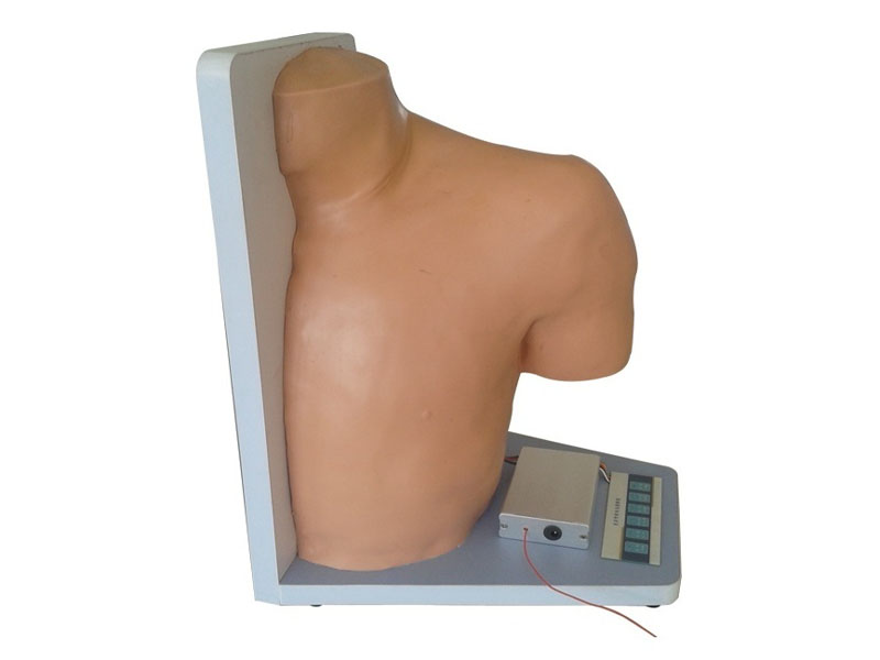 肩關節腔內注射模型模擬成年人肩部外形和內部結構,標準的肩關節穿刺體位;模型體表皮膚采用高分子材料制成,易于進針并有逼真的進針感,肩關節腔內可抽出積液,模擬滑囊耐針刺效果好。