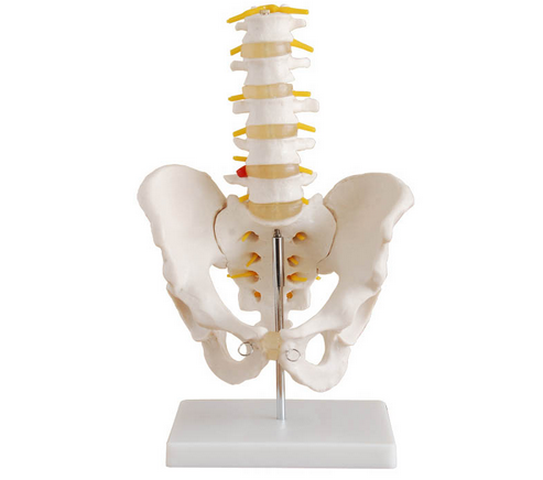 本模型由髖骨、骶骨、尾骨及5節腰椎組成,有底座。