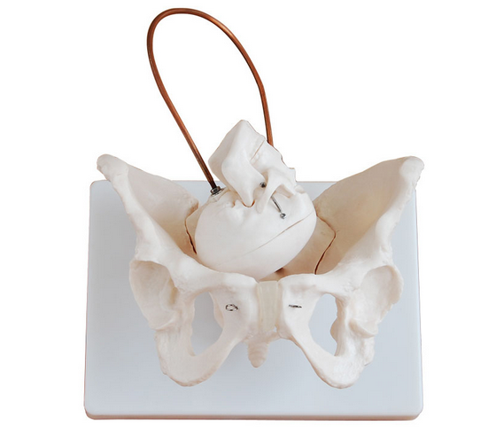 本模型由兩塊髖骨、骶骨、尾骨組成,用一根軟的金屬條連著嬰兒頭顱,可彎曲至任何角度。適合醫學院校講授助產課程時做直觀教具用。