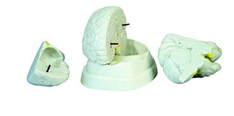 腦解剖模型展示了腦的整體概念,以及大腦、小腦和腦干之間的相互關系。自然大,分成3件,置于塑料座上。
