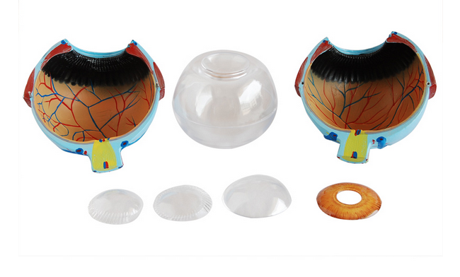 本模型用于顯示人類眼球的解剖結(jié)構(gòu),如眼球壁的三層膜(外膜、中膜和內(nèi)膜)和填充內(nèi)部的主要折光體、晶狀體和玻璃體等。