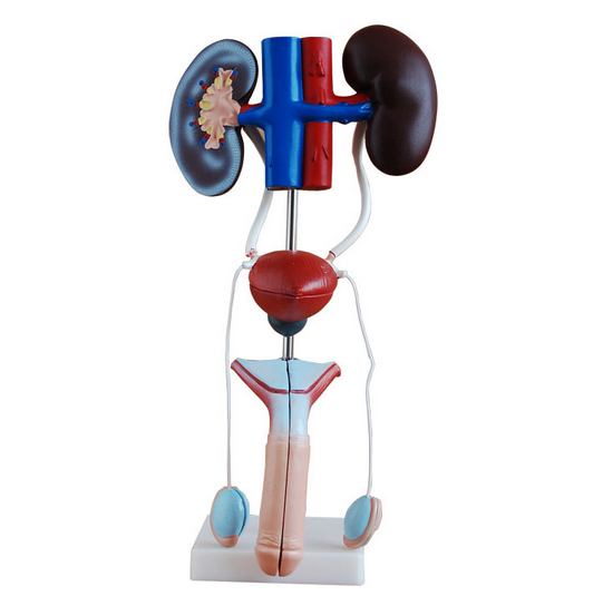 男性泌尿生殖系統(tǒng)解剖模型顯示了泌尿生殖系統(tǒng)主要臟器的外形和腎臟、膀胱、陰莖和睪丸的構(gòu)造。用PVC制成。