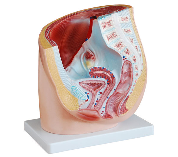 女性矢狀解剖模型作矢狀切面,顯示女性內生殖器、子宮體、陰道和子宮闊韌帶等。供醫科學校講課時作直觀教具用。用PVC制成,安放于塑料座上。