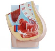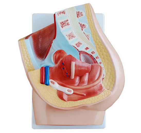 女性盆腔正中矢狀解剖模型作矢狀切面,顯示女性內生殖器、子宮體、陰道和子宮闊韌帶等。很詳細的顯示了腹部和骨盆肌肉。
