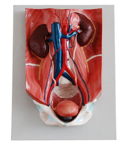 泌尿系統(tǒng)模型由泌尿系統(tǒng)各器官連腹膜后腔、腎剖面、膀胱剖面等4個(gè)部件組成。顯示泌尿系統(tǒng)各器官、腎剖面的腎皮質(zhì)、腎髓質(zhì)以及膀胱等結(jié)構(gòu)。